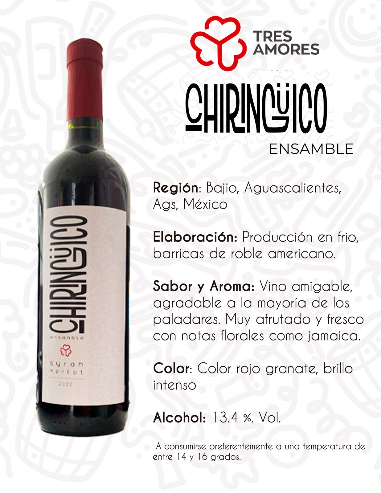 Sabor y Aroma: Vino amigable, agradable a la mayoría de los paladares. Muy afrutado y fresco con notas florales como jamaica.